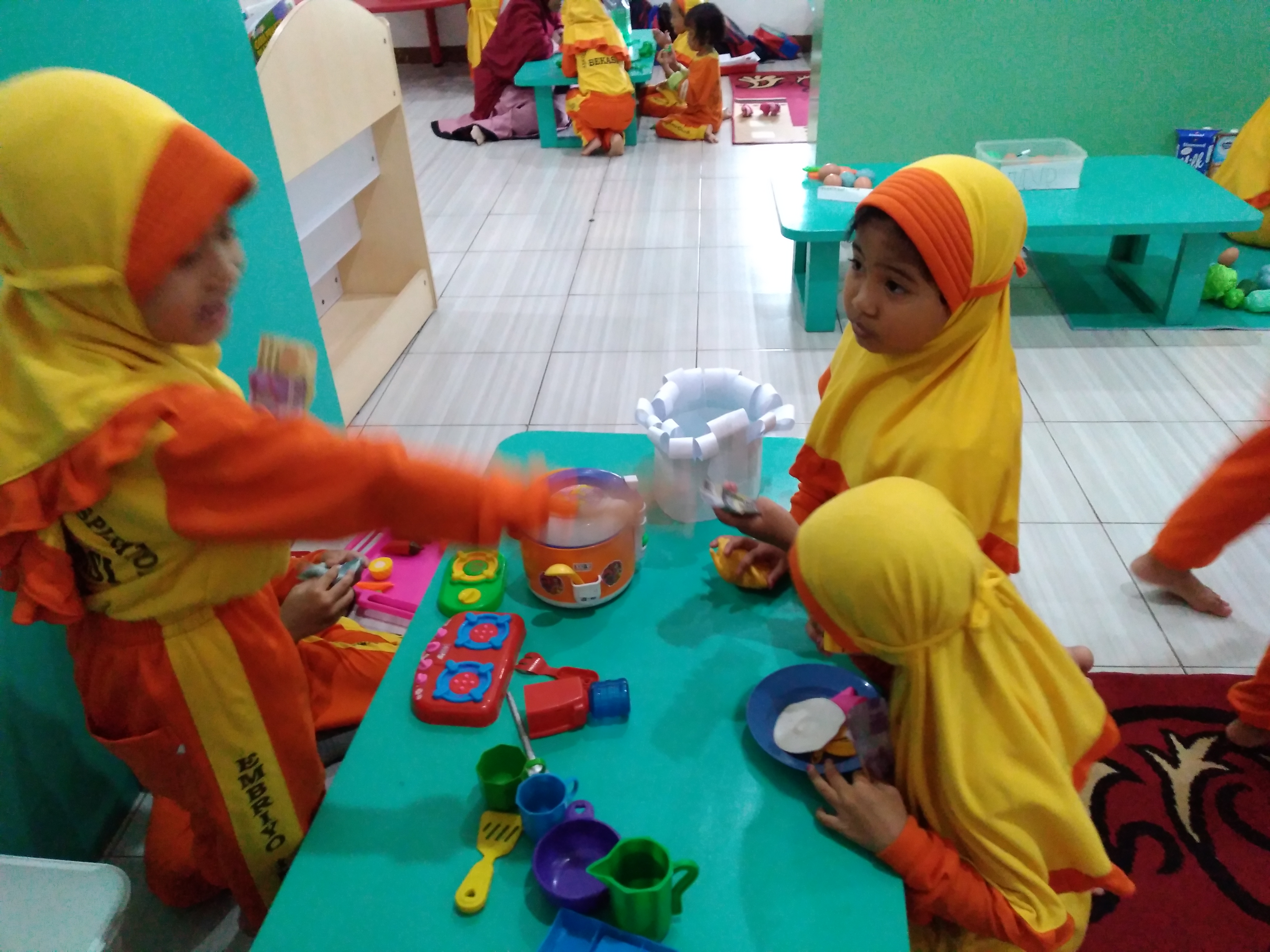 Main peran makro (besar), dimana anak bermain menggunakan alat besar yang digunakan anak untuk menciptakan memainkan peran, seperti: peralatan makan, keranjang dan alat lainnya sesuai ukuran nyata.